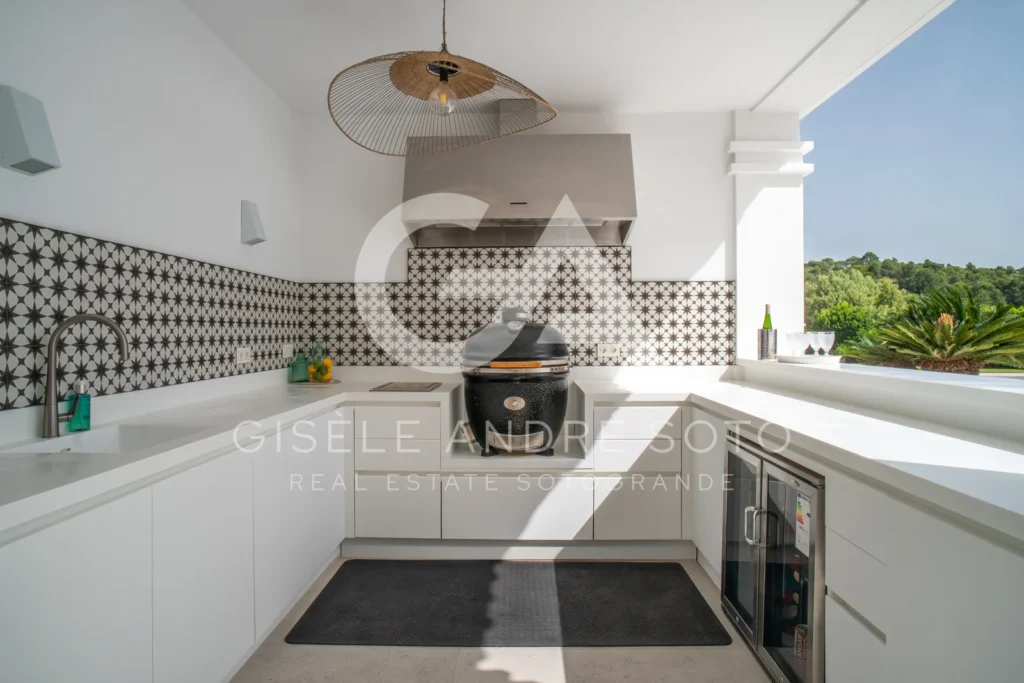 Set on a sprawling 3,693 m² plot with a 975 m² built area, this south-southeast-oriented villa captures optimal sunlight and panoramic views of the iconic La Reserva Golf Course and lush Mediterranean landscape. Floor-to-ceiling Roman Clavero windows with integrated sensors flood the interiors with natural light, seamlessly blending indoor refinement with outdoor splendour. Expansive 148 m² terraces, featuring a sleek Corian outdoor kitchen and entertainment area, elevate al fresco living to an art form, perfect for sophisticated gatherings or serene relaxation.